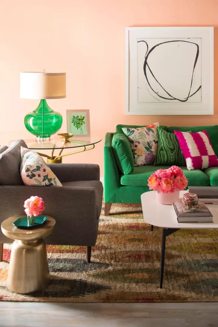 Vừa trang trí vừa cung cấp ánh sáng, đèn bàn là một ý tưởng chiếu sáng khác cho không gian phòng khách. Với một phông nền đầy màu sắc, đây là cách tuyệt vời để thêm điểm nhấn sắc màu cho không gian.