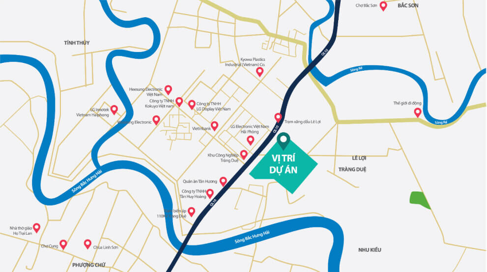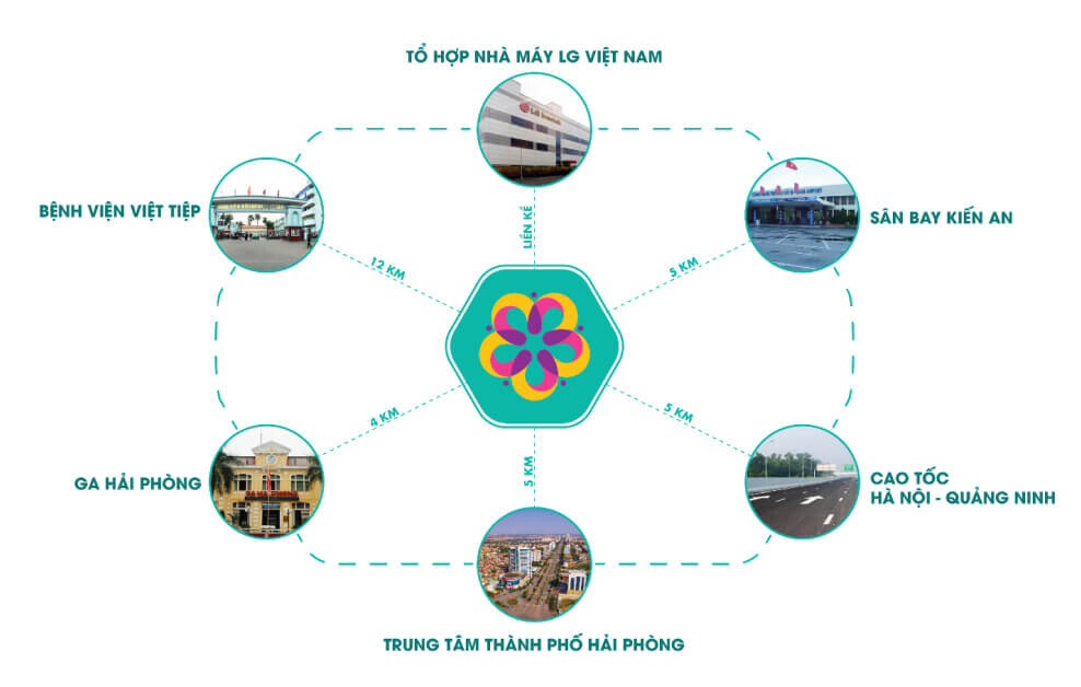 Ngoài ra dự án còn nằm trong Tam giác kinh tế Hà Nội – Hải Phòng – Quảng Ninh. Dự án Cách cao tốc Hà Nội Quảng Ninh 5km, Cách Trung tâm Thành Phố Hải Phòng 5km, Cách Thành Phố Uông Bí 20km, Cách tỉnh Hải Dương 2km.