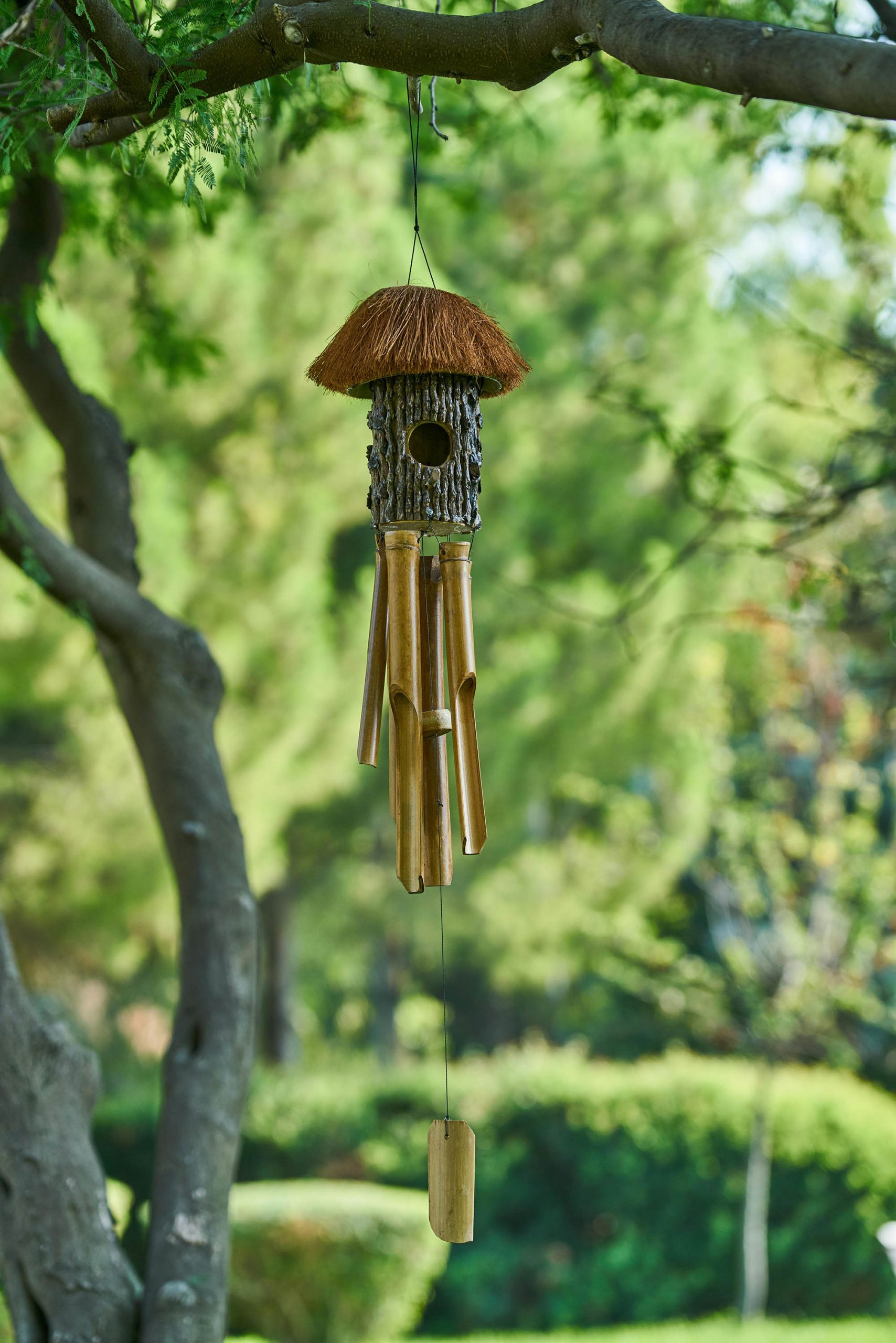 Lắng nghe âm thanh của chuông gió tre, bạn sẽ có cảm giác đang đắm chìm vào bản hòa tấu nhẹ nhàng của núi rừng bạt ngàn. Nét đẹp mộc mạc của loại vật phẩm dân dã này cũng phù hợp với những ngôi nhà, căn phòng được bài trí theo phong cách tối giản hoặc đề cao yếu tố thiên nhiên. Bên cạnh chức năng giải tỏa căng thẳng, chuông gió tre cũng mang nhiều lợi ích phong thủy nếu được treo ở hướng Đông, Đông Nam hoặc phía Nam. Cụ thể, hướng Đông đại diện cho sự sinh trưởng, Đông Nam mang đến tiền tài còn hướng Nam tượng trưng danh tiếng của gia chủ.