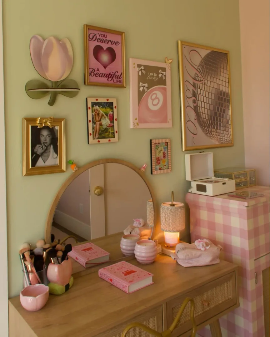 Chẳng hạn, nếu bạn là người theo đuổi phong cách tối giản, một chiếc gương trơn với khung mỏng và màu sắc trung tính sẽ góp thêm phần thanh lịch và gọn gàng cho căn phòng của bạn. Trong khi đó, nếu bạn là cô gái ngọt ngào yêu thích sắc màu, một chiếc gương bọc len sặc sỡ và có họa tiết đính kèm sẽ là lựa chọn phù hợp dành cho bạn.