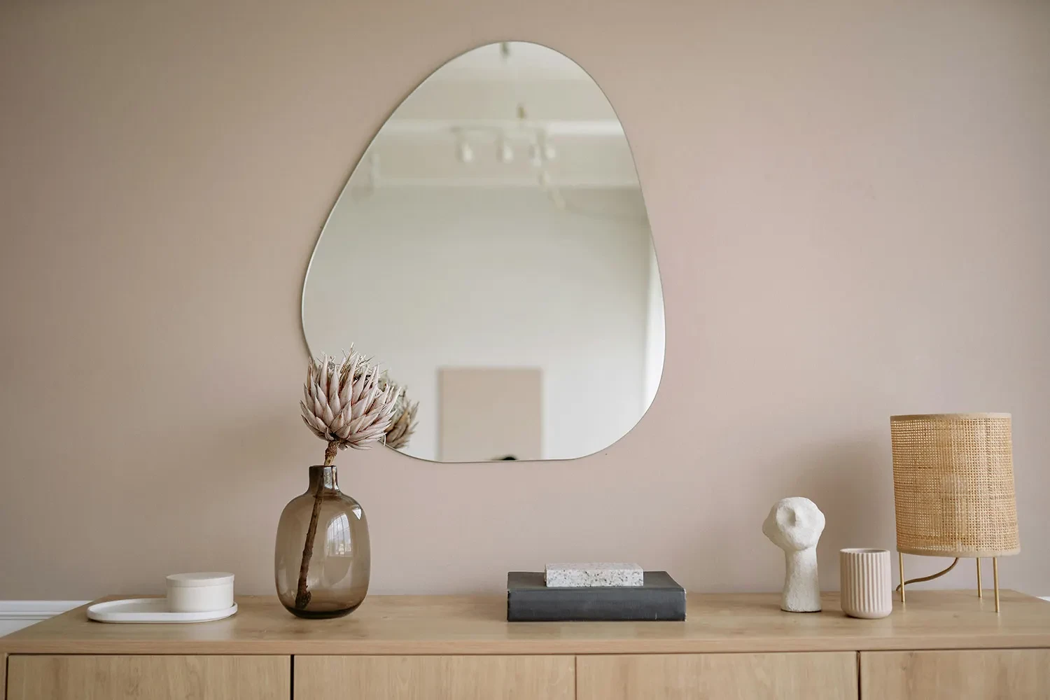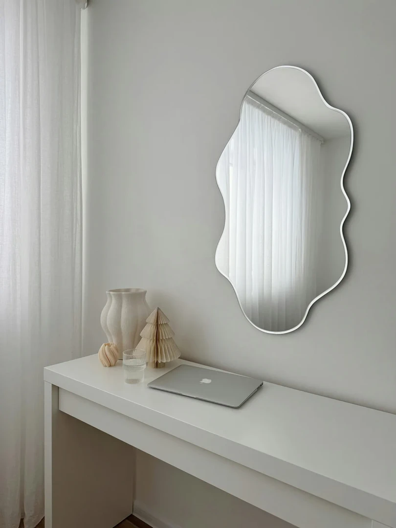 Ngoài ra, kiểu dáng là một trong những tiêu chí quan trọng bạn không thể bỏ qua khi lựa chọn. Gương tròn, gương oval sẽ mang lại cảm giác mềm mại, uyển chuyển, thích hợp cho không gian cần sự hài hòa, nhẹ nhàng và bổ sung năng lượng tính nữ. Trái lại, gương vuông, hình chữ nhật và hình thoi giúp tạo sự ổn định và vững chắc, phù hợp cho những không gian tối giản, hiện đại. Mặt khác, những chiếc gương với đa dạng kiểu dáng như lượn sóng, hình trái tim, hình đám mây… là lựa chọn hoàn hảo cho những tâm hồn phá cách, phóng khoáng, yêu tự do và thích sáng tạo.